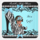 Baby Girl in High Heel Shoe, African American Cute Couples Baby Shower. Stiletto Baby Girl Teal Blue and Black Lace White Zebra Print, Pearl Lace Couples baby shower Pearl Lace Bow Ribbon invitation, new baby, girl