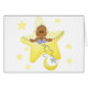 An adorable African American baby peeks out from inside a big yellow star and lots of other stars and a moon surround him.You can customise these baby shower invitations on the spot!