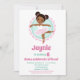A cute black girl ballet dancer performing an arabesque while wearing a pink tutu. Pink and mint green.
