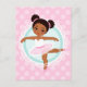 Cute African American ballerina in a pink tutu, performing an arabesque. Pink polka dots and mint green accent.