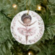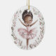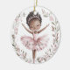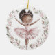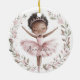 African American Ballet Dancer Ceramic Ornament. Pink floral Personalised script African American Ballerina Ornament with floral wreath botanicals.