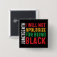 This square button features the slogan "Juneteenth, I will not apologise for being black" in white, red, yellow, and green all-caps fonts and makes the perfect accessory to celebrate the anniversary of Emancipation Day on June 19, 1865, and to support the African Americans community.