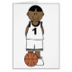 An African American boy basketball player with a white and black jersey and basketball on items you can customise with a name and text saying.
