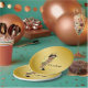 Bee baby shower paper plates with adorable African American baby boy wearing a cute bumble bee outfit on a rich gold background with flying bumble bees. You can add text to personalise these black and gold bee baby shower paper plates, and you can remove the gold background to add the colour of your choice.