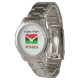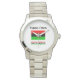 Women's watch, features the red, black and green, vertical striped flag of the African Diaspora. Below it, in the colours of the flag, are the words, AFRICAN AMERICAN. Above, is a place for a name. No numbers for a stylish look. You can use the customise or personalise feature to change the colour and font for the name. You can also add a background colour of your choice to make it match your wardrobe or anything you wish. Choose from a wide variety of styles for women, men and kids. Great gift for Kwanzaa or to celebrate Black History Month and Black Americans. The red in the flag represents the blood shed for freedom. The black represents the colour of the African natives and their descendants. The green refers to the lushness of Africa itself. It is an international flag, adopted by those descended from the African Diaspora. If you wish a more customised design, and are uncomfortable doing it yourself, scroll down to the ABOUT THIS DESIGN section. Look for the teeeeensy, tiny letters that read, CONTACT THIS DESIGNER. that will let you email your virtual Auntie Shoe. If she can make your design extra special, she is certainly willing to try. So do not hesitate to ask.