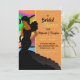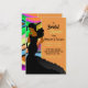 This Elegant Bridal Shower Invitation features an African American bride-to-be in a black gown with an abstract and orange background.