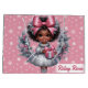 Celebrate the holidays in style with this beautiful African American girl Christmas wreath! Featuring an adorable girl in a shimmering silver dress, holding a pink gift, and surrounded by festive pink and silver accents. Perfect for adding charm, joy, and diversity to your modern holiday décor.