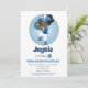 This girl's birthday invitation features a cute African American softball girl in blue uniform with mitt, ready to throw the ball.