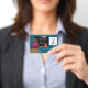 African American k-12 teacher blue photo ID badge