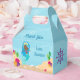 Cute children's birthday party favour box for a little African American girl who loves pretty purple hair mermaids. These cute party boxes feature an adorable pink haired black mermaid swimming around the lovely ocean coral. A cool children's pool party theme with an adorable pink seahorse and underwater castle on the back.