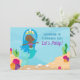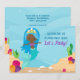 Join us under the sea for a whimsical children's birthday party for a little African American girl who loves pretty purple hair mermaids. These cute party invitations feature an adorable blue haired black mermaid swimming around the lovely ocean coral. A cool children's pool party theme with deep blue water.