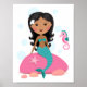 African American mermaid girl starfish seahorse Poster