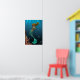 Young mermaid holding a cute baby sea turtle in a under the sea background with different corals in the front. Size of poster is 16.00" x 22.87".
