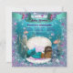 Mermaid baby shower invitation with adorable African American mermaid princess with diamond tiara on a pretty pearl draped clam shell on a beautiful teal blue and purple under sea background. You can easily customise this beautiful mermaid baby shower invitation for your event by simply adding your details. This is a printed design with no real glitter, jewels, bows, etc.