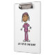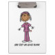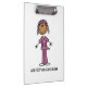 A great clipboard for nurses, features an African American female nurse in a purple uniform with stethoscope and an area you can customise or leave blank.