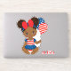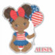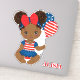 This cute afro baby girl sticker is in navy, red and white colours. The sticker is designed with cute, African American baby girl holding air balloons. The baby girl is dressed in patriotic outfit with stripes, stars and red bow. The little black girl with two buns. You also can personalise the name.