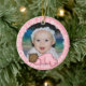 Baby's 1st Christmas customisable keepsake ornament with a sleeping baby girl in a pink sleeper and soft snowflake design. You can easily customise this ornament with baby's photo and add your own text to the back. It's great as a 1st Christmas gift and will be a memento for years to come.