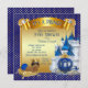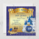 Royal blue and gold prince baby shower invitations with adorable African American ethnic baby prince on a pretty gold pillow on a beautiful royal blue and gold castle and royal coach background. These royal blue and gold prince baby shower invitations are easily customised for your event by simply adding your details.