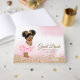 Pink and gold baby shower guest book with adorable African American princess wearing a pretty pink ballerina tutu and gold crown with a string of pearls on a beautiful pink and gold background. You can easily customise this cute baby shower guest book by simply adding your text. You can also remove the background and add the background colour of your choice.