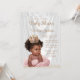 African American princess baby shower invitation with beautiful baby girl wearing a pretty pink tutu and jewel tiara on an elegant white satin background. This African American princess baby shower invitation is easily personalised with your event details.