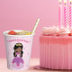 These adorable pink princess happy birthday party paper cups feature a drawing of a pretty black little girl wearing a beautiful pink ball gown. Personalise this cute children's birthday decor with your African American child's name between the fun heart pattern.