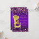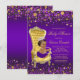 African American princess baby shower invitation with cute African American ethnic baby girl wearing a pretty purple tutu and string of pearls and diamond crown sitting on a beautiful gold chair on a rich purple and gold confetti glitter background. This beautiful purple and gold baby shower invitation is easily customized for your event by simply adding your details in the font style, color and wording of your choice. This is a printed design with no real glitter, confetti, jewels, etc.
