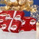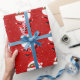 Cute African American Santa Claus Christmas custom holiday wrapping paper design that displays a cute whimsical Santa Claus and snowflakes on red background.