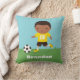 Decorate the kids bedroom with this throw pillow that comes with a cartoon illustration of a cute African American boy with short cropped hair who is going to kick the football. The boy is dressed in a yellow jersey, brown shorts and matching colour palette shoes and socks. You can personalise name and even the jersey number with the kid's favourite number too! Great for boys who love soccer or are active in the sports.