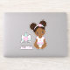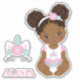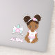 This cute afro baby girl sticker is in pastel pink, green and white colours. The sticker is designed with cute, African American baby girl with buns. The baby girl dressed in unicorn bodysuit. You also can personalise the name.