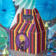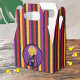 A cute and colourful Halloween favour box for kids with red , orange , purple and black stripes and an adorable witch . The words read "Happy Halloween" but you can easily change it and replace it with your own text . Look for our matching paper napkins and paper plates .