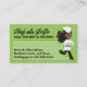 Cute African American woman with awesome flowing hair chef running with a food dome or dinner platter on this business card for food delivery, meal delivery or catering.