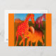 This whimsical piece depicts the animals grouped together, suggesting a sense of community and interaction within their shared habitat. The minimal background hints at a grassy plain or savanna, while the entire image is framed within a solid orange border, adding a vibrant touch.