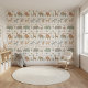 Create a stunning focal point in your young child's room with this 'African Animal Parade' wallpaper. This bold and playful design features a repeating pattern of stylized lions, elephants, giraffes, and zebras, woven together with earthy tribal motifs. Set against a soft ivory background, this wallpaper brings a modern boho energy to any nursery or playroom. Perfect for an accent wall, it invites your little explorer into a world of savanna wonder while maintaining a sophisticated, nature-inspired aesthetic. Search ID1262 to see other products with this cute safari pattern. Note: design adapted from generative content.