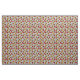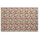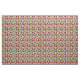 Traditional African ankara style patterned fabric, wth red and gold biloba flowers over a black and white geometric background
