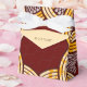 Invite guests into your global family with these colourful and bold red gold and brown favour boxes that honour your African heritage. This Ankara pattern is based on traditional Dutch wax print fabrics popular across the African diaspora.