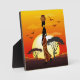 Beautiful Woman African Silhouette dressed with Wax traditional Fabric Dress, carrying a hand made decorated jar, Walking in the Amazing Nature of the African Savanna, on a warm and Peaceful Sunset. Original Vector Illustration Copyright BluedarkArt TheChameleonArt.