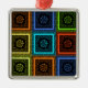 Circular Patterns: The repeating circular designs within each square resemble mandalas or stylized flowers, introducing intricate detail and cultural significance.