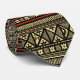 This is a beautiful African influenced design tie with geometric patterns with accents of small red strips.