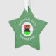 The red, black, and green African American Flag is worn by this angel for Christmas decor. She flies in a white circle of squiggly squares surrounded by a background of green squiggly squares. Above the circle reads CHRISTMAS 202?. You can customise by adding the year or replace with your text. Below, is a place for a name, yours or personalise for a gift of a star ornament.