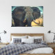 A Wild African Elephant in all his glory with his ears fanned and cool looking tusks glares at you from this wrapped canvas print. Photo taken on Safari by Mary Norris and used with her permission.
