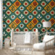 A vibrant African-inspired floral tile pattern featuring bold flowers, leaves, and geometric shapes. With earthy reds, deep greens, and gold tones, this design captures the spirit of traditional African textiles—perfect for custom home decor, fashion, and accessories.