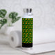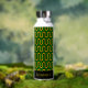 Colourful African print water bottle patterned all over in a green, yellow and black geometric pattern. There's customisable text across the front where you can add a name or message