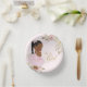 Pink and gold ballerina baby shower paper bowls with adorable African baby girl wearing a cute pink princess tutu with braided hair and hair bow on a pretty pink and gold floral background. These cute pink and gold baby shower paper plates are easily customised for your event by simply adding your event details. You can change the background colour.