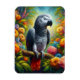 African Grey Parrot with Colourful Flowers Flexibl Magnet