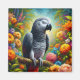 African Grey Parrot with Colourful Flowers Magnet