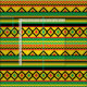 Bold African kente style geometric patterned fabric in bright yellow, red, yellow, green and black