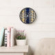Add a touch of cultural elegance to your home with this stunning African Kuba Cloth Clock. Featuring a geometric print in rich midnight blue, black, and tan beige, this clock is a perfect blend of traditional artistry and modern design. The intricate patterns and bold colours make it a standout piece that will enhance any room's decor. Whether you're looking to add a unique accent to your living space or searching for a thoughtful gift, this clock is sure to impress.