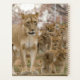 This image shows African lion cubs accompanied by their mother. Females raise the cubs and are the primary hunters. Females usually give birth to one to four cubs after a gestation of about 3 1/2 months. Cubs typically nurse for six months but start eating meat at three months. Due to dangers, including starvation and attacks by male lions taking over prides, up to 80 percent of lion cubs die within their first 2 years of life. | "Smithsonian" and the Smithsonian logo are registered trademarks o