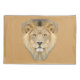 A beautiful African lion face with glowing yellow eyes and a full mane.