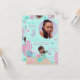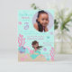 Little mermaid third birthday invitation card with underwater creatures with photo insert template.